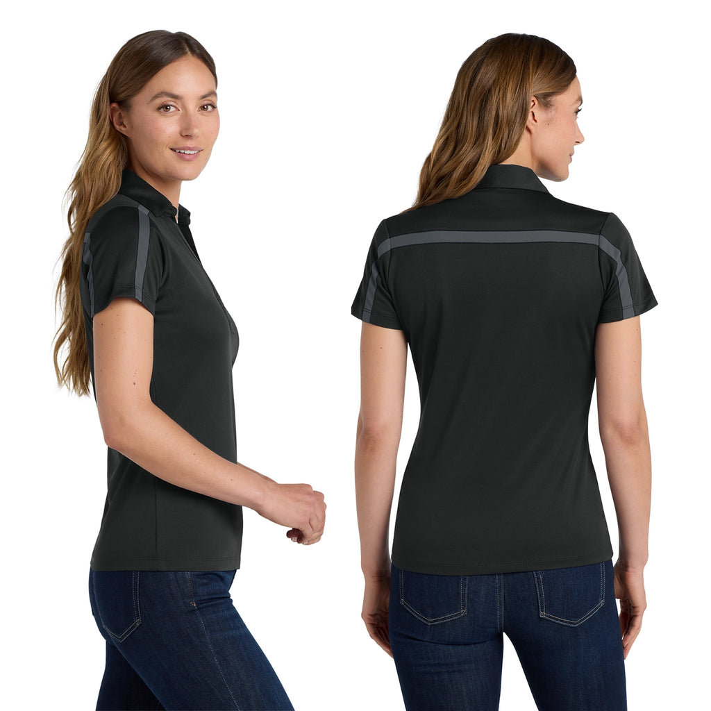 A sleek ladies’ knit with bold contrast striping, this piece resists snags and helps colors stay vibrant. It includes modern technology to maintain dye brilliance, tagfree wear, and a clean silhouette—perfect for polished branding.