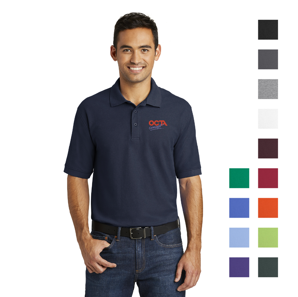 Your promotional efforts will shine with custom embroidered polos! Durable polo with a stain-release finish, made with a 6.5-ounce combination of 50% polyester and 50% cotton. Men's polo features a roomy, relaxed fit ideal for work or play. Available in a variety of eye-catching colors.